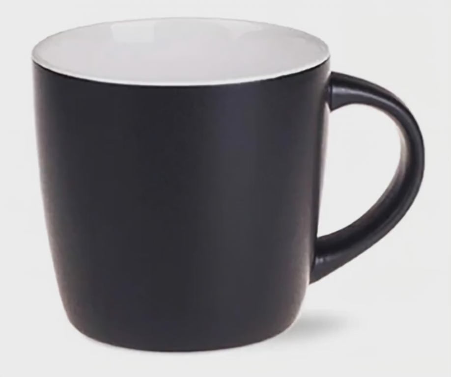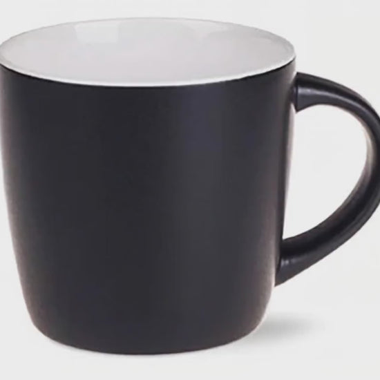 Y-R1 bauchiger, runder Kaffeebecher matt, aussen schwarz matt / innen weiss - Preis Beispiel 150 Stück 3,95 EUR inkl. Druck *